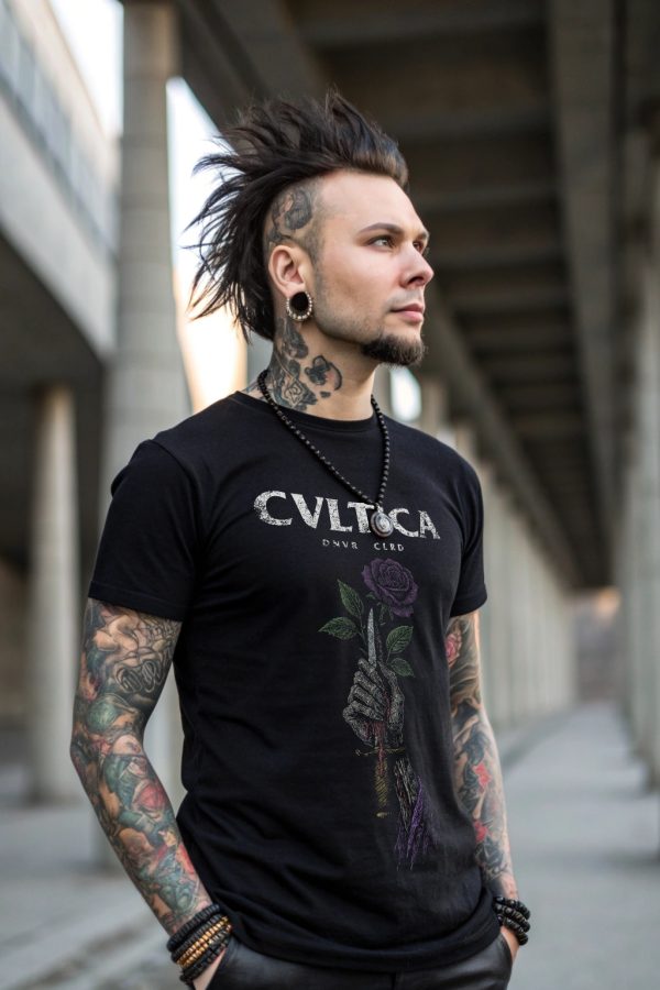 A declaration of beauty born from pain. This design captures the tension between creation and destruction: an undead hand gripping a blood-stained blade that gives rise to a violet bloom. The rose is both fragile and defiant, a symbol that growth demands sacrifice and that darkness often births the most striking forms of life.