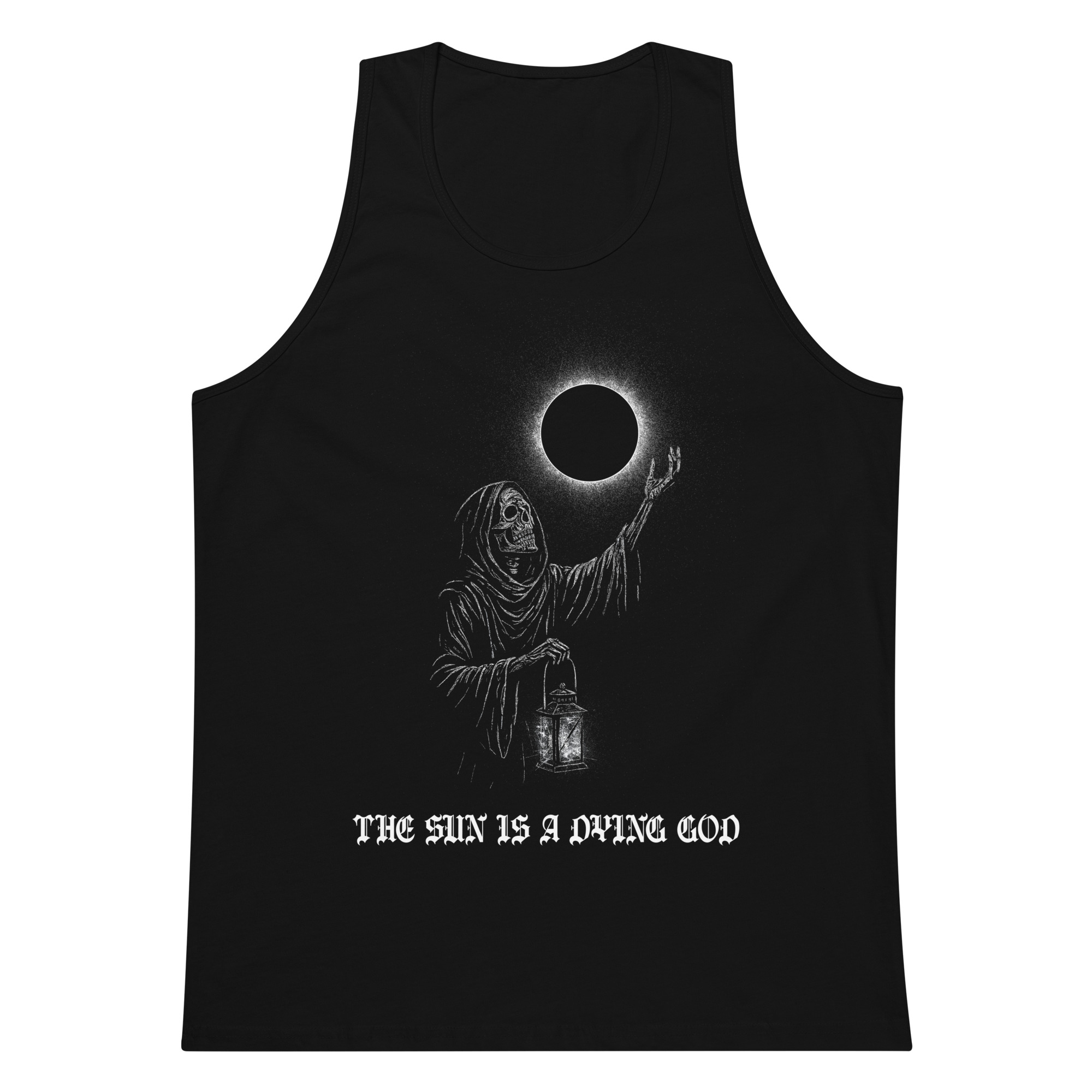 The light you cling to is already burning out. This design marks the sun not as a giver of life, but as a false god collapsing under its own weight. A proclamation against the illusion of dawn, a banner for those who walk in shadow.